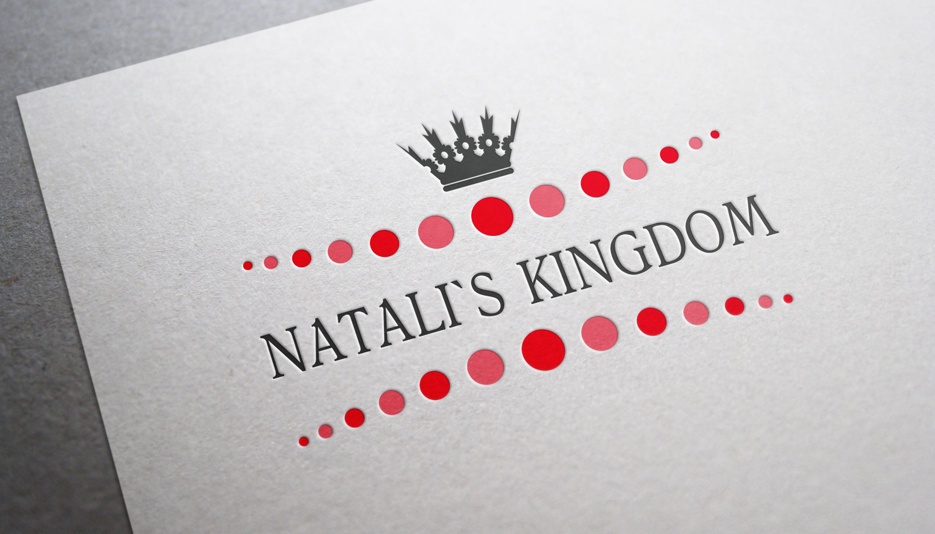 Але як говорилося на початку, логотип повинен привертати увагу, бути в міру яскравим. Тому ми використовували такий простий, але ефективний прийом з барвистими точками в рожевій колірній гамі. Вони додали в логотип родзинку, зробили його яскравим та особливим. А рожевий колір привертає увагу дівчат, які є головними клієнтками «Natali’s Kingdom». Логотип вийшов стильним, красивим, гідним якісних прикрас.