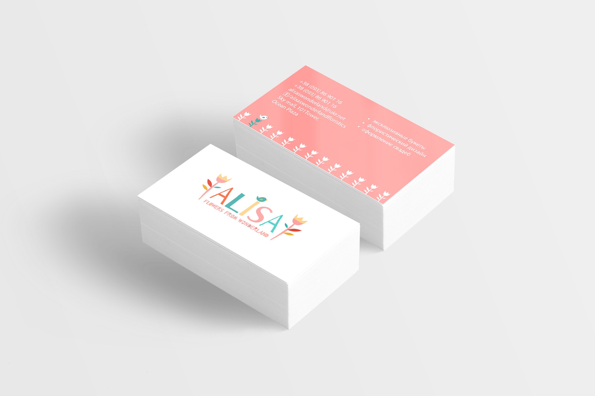 Натхненні історією про маленьку дівчинку Алісу, яка подорожувала чудово та неймовірною країною, наші дизайнери взялися до роботи. Буквально все в логотипі мало бути незвичним, незвичним та чарівним. Саме написання назви студії флористики виконано у авторському стилі. Родзинкою є маленька синя пташка, яка сіла на букву «I». Логотип красиво оздоблений невеликими тюльпанами, що відображають рід діяльності компанії.