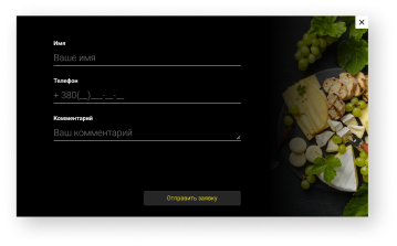 Віконце для заявок — зручний спосіб зв’язатися з командою «Гармонії Смаку», якщо покупець чи виробник потребуватиме додаткової інформації. Стильний чорний колір, тіні та якісне фото товару залишать приємне враження. «Гармонія Смаку» залишилася задоволена співпрацею з LogoFactory та продовжує робити замовлення. Останнє із завдань — адаптація логотипу для англомовної частини ринку. Віримо, попереду не одна взаємодія і з замовником, про якого ви щойно завершили читати, і з вами, якщо наважитеся написати нашій команді! Чекаємо 🙂