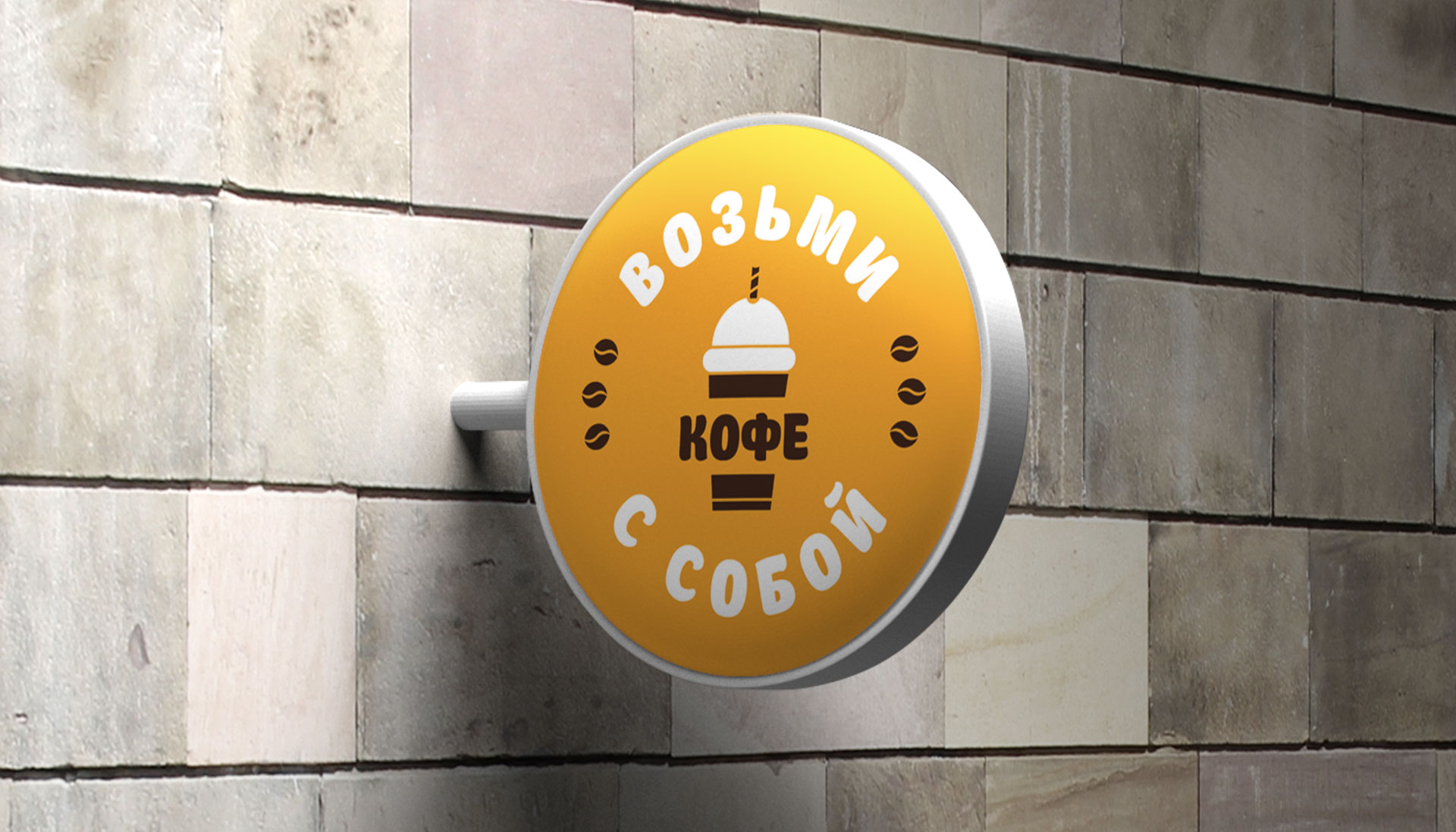 Сегодня точки, которые предлагают кофе на вынос, достаточно популярны во всех городах мира. Когда-то это была западная фишка, теперь наслаждаться ароматным напитком по пути на работу можем и мы. Но с появлением таких заведений на каждом шагу им необходим особенный имидж, яркий и запоминающийся логотип. Он должен привлекать внимание и подчеркивать особенности заведения. В нашу студию обратились представители одной из таких кофейных точек СПб «Возьми кофе с собой», чтобы разработать качественный логотип для кофе на вынос. Перед дизайнерами стояла задача создать лаконичный, стильный и заметный фирменный знак, который бы эффектно смотрелся бы и на вывеске, и на других элементах фирменного стиля.