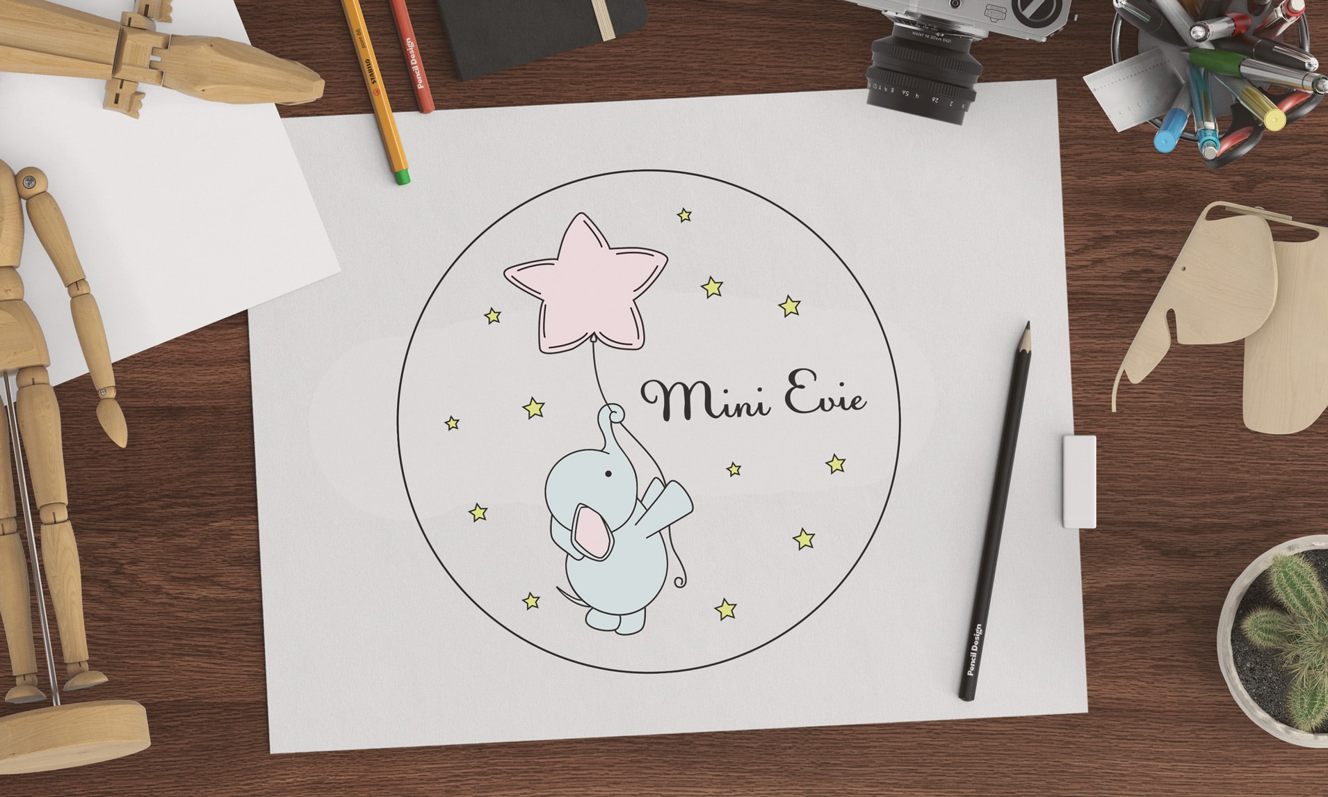 Векторное изображение имеет огромное количество плюсов. Начнем с того, что его можно масштабировать без потери качества и в любых размерах. Использовать логотип, отрисованный в векторе, можно будет на любых носителях, от маленьких визиток до огромных рекламных стендов. Имея необходимый рисунок не бумаге, компании Mini Evie планирует использовать его и на элементах фирменного стиля, и в рекламе, одним словом, иметь полноценный логотип дл широкого применения.