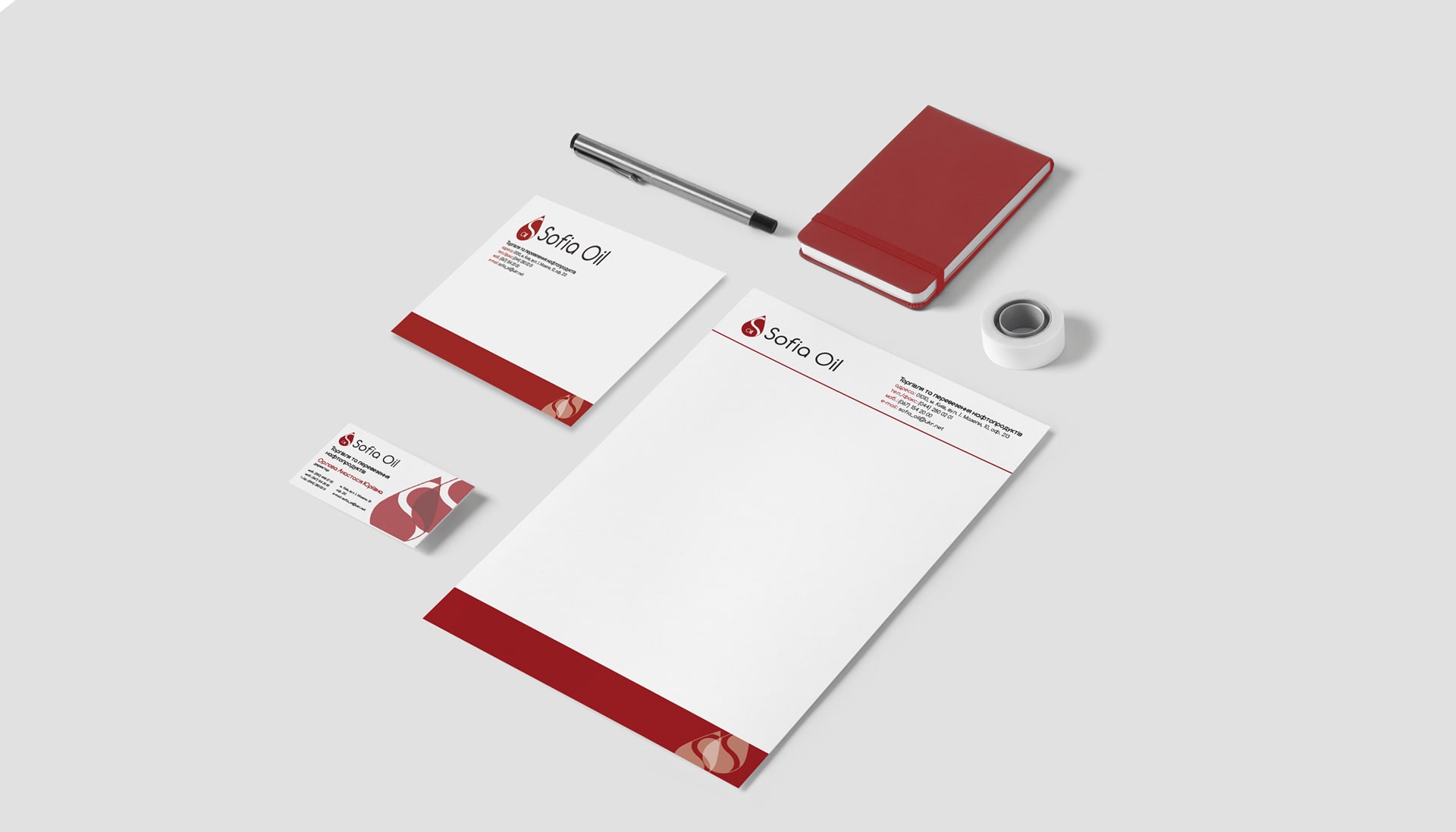 На основі логотипу, який є водночас солідним та яскравим, ми розробили зовнішній дизайн елементів фірмового стилю компанії. Дизайнерами були розроблені візитки, конверти, фірмові бланки, блокноти та інші атрибути. Особливістю даного проекту стала робота з автотранспортом, на основі розробленого логотипу та фірмового стилю дизайнери компанії займалися брендуванням бензовозу. Проект вийшов цікавим для нас та вдалим для компанії “Sofia Oil”. Замовник високо оцінив роботу студії.