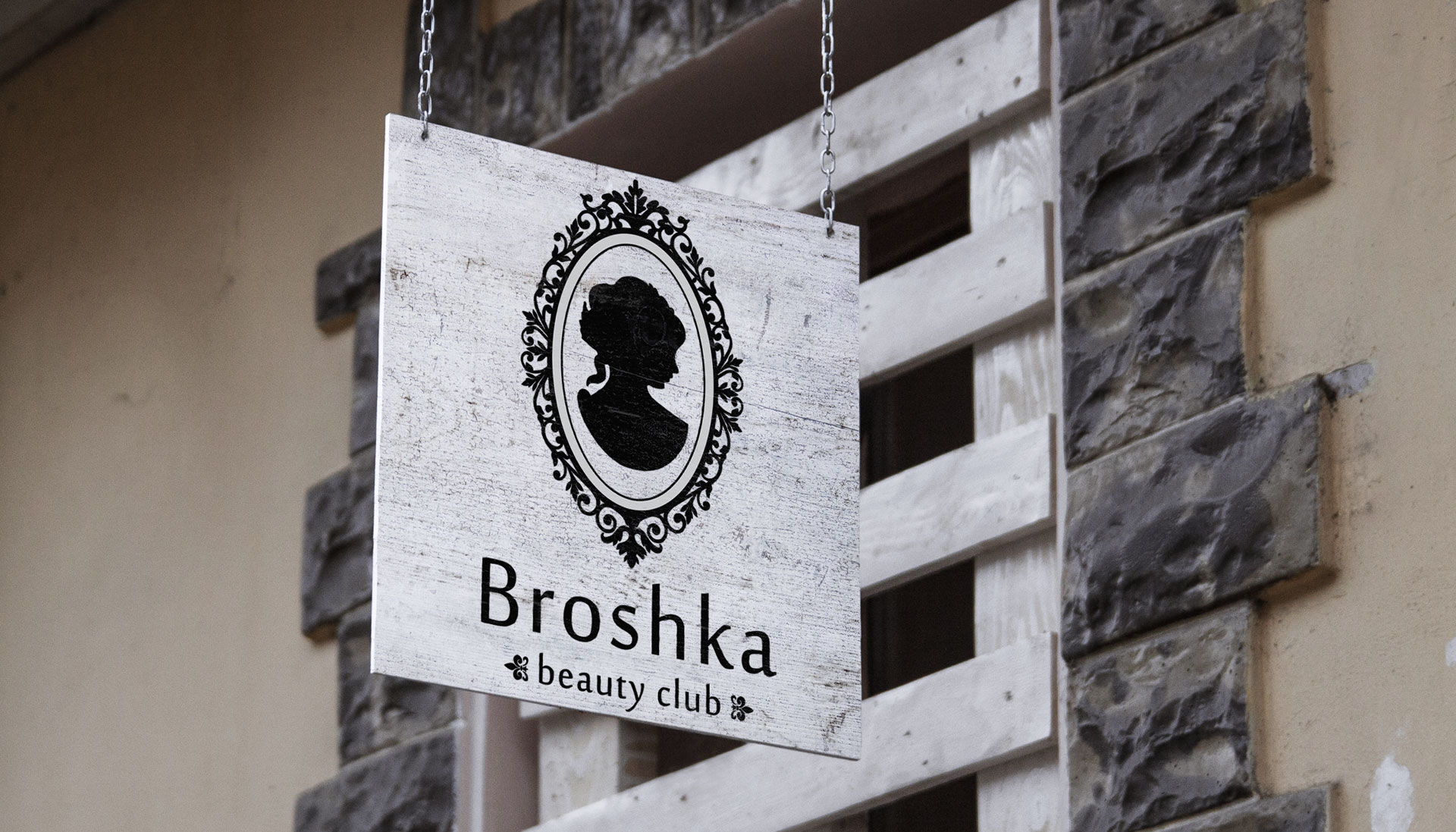 Працюючи над концепцією, ідея прийшла із назви студії краси. Така легка, романтична та дівоча назва «Брошка» доповнена стильним зображенням. Сам логотип створений у формі старовинної брошки, всередині якої зображено контур молодої дівчини у профіль. Тонкі та витончені риси обличчя, красиві візерунки роблять знак жіночним та бездоганним. Незважаючи на те, що логотип виконаний лише в чорному кольорі, він виглядає надзвичайно цікаво та яскраво.