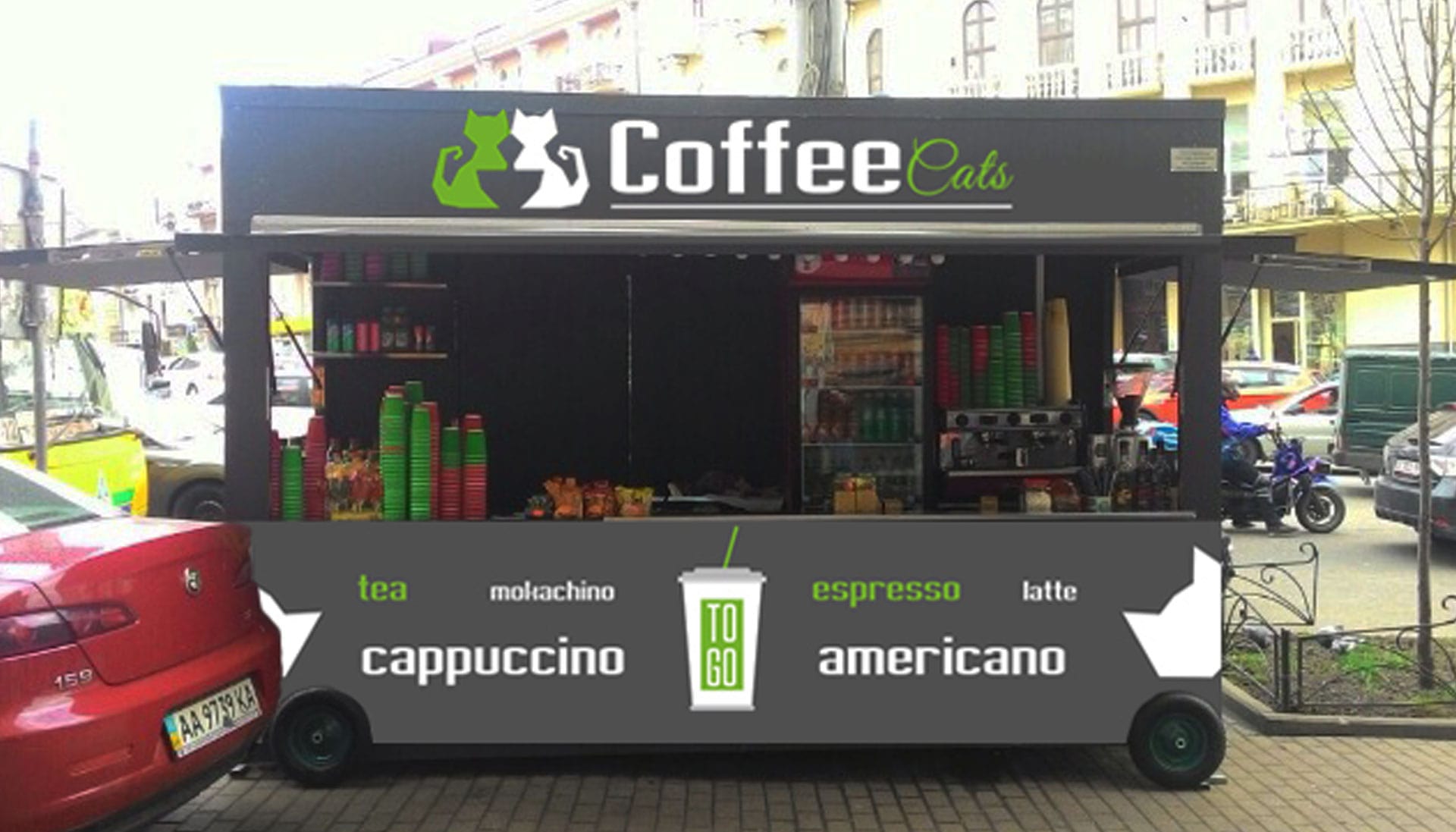 Достатньо популярним бізнесом сьогодні є кава на винос, і для цього навіть немає необхідності орендувати приміщення. Організувати кав’ярню на колесах можна, купивши фургон і встановивши його там, де він вам здається найбільш доречний. Звичайно, необхідно отримати дозволи та документи, але в будь-якому випадку варіантів для встановлення кав’ярні маса. Реклама такому бізнесу практично не потрібна, якісні логотип та брендування для кав’ярні на колесах стануть кращою та найефективнішою рекламою.