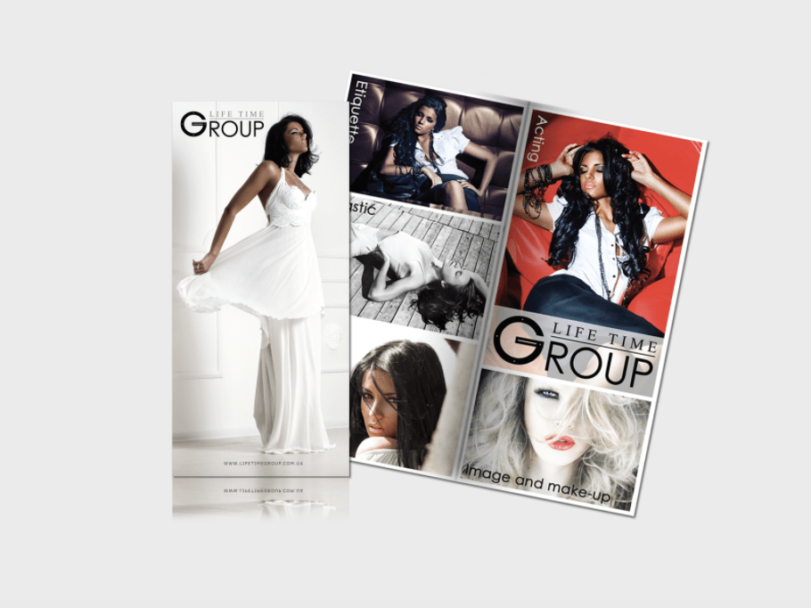Компанія Life Time Group охоплює широкий спектр послуг: організація та проведення різноманітних шоу, корпоративних свят та вечірок; надання моделей на покази, рекламні акції, презентації; професійна фото та відеозйомка, підготовка портфоліо; навчання у школі моделей; та інші PR-послуги. У нас у студії розробляли логотип та фірмовий стиль для модельної агенції. Цікава робота зі створення єдиного образу для такої величезної кількості послуг. У логотипі необхідно було звести докупи всі послуги і створити фірмовий стиль, що підходить під усі вищеперелічені пункти.