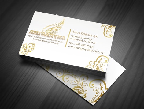 На основі логотипу ми розробили візитки дитячого психолога. Крім дизайну, наша студія надала якісні послуги друку візиток. Ми підібрали дорогий, якісний папір, друкована продукція вийшла солідною, але водночас ніжною, легкою, здатною привернути увагу і дітей, і дорослих. Замовник високо оцінив роботу студії.